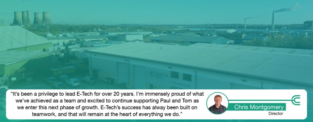 After more than two decades as Managing Director of E-Tech, Chris Montgomery will continue to play a vital role in the business as Director. As the company’s Founder and a Board Member, he remains an active and influential part of E-Tech’s senior leadership team. He will work closely with Paul and Tom to support their transition into their new roles while continuing to oversee key areas including Sales and Marketing. His leadership, vision and commitment have been instrumental in shaping E-Tech into the trusted, award-winning company it is today.