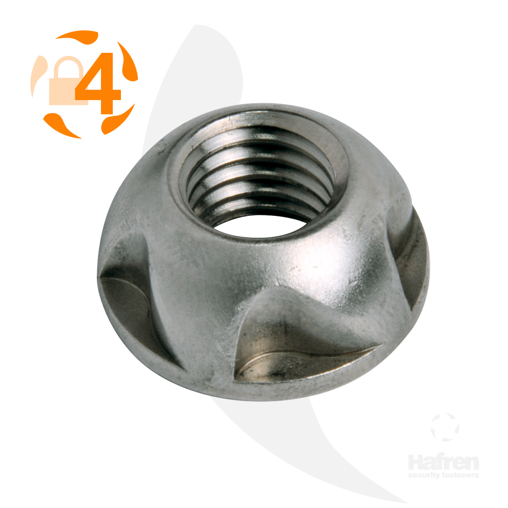 Hafren KMRN-S A2 Stainless Steel Kinmar ® Removable Nuts are premium high-security two-way nuts designed for both installation and removal using a matching driver socket. This innovative Hafren KMRN-S design offers outstanding resistance to tampering and attack, combining strength, reusability, and an attractive smooth finish. Ideal for a wide range of applications, these Stainless Steel Nuts deliver long-lasting corrosion resistance and a professional appearance.